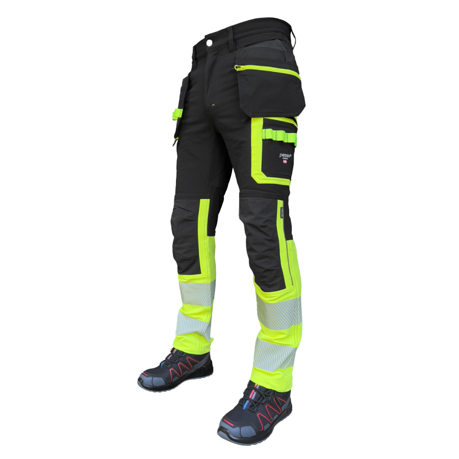 Work trousers - Jupiter Black/High Visibility - Stretch Work trousers in full stretch from Pesso, durable fabric and comfortable fit. Flexible trousers with Cordura® details for better durability. Stretch in all directions and high comfort provide good freedom of movement. Removable pockets with zip.