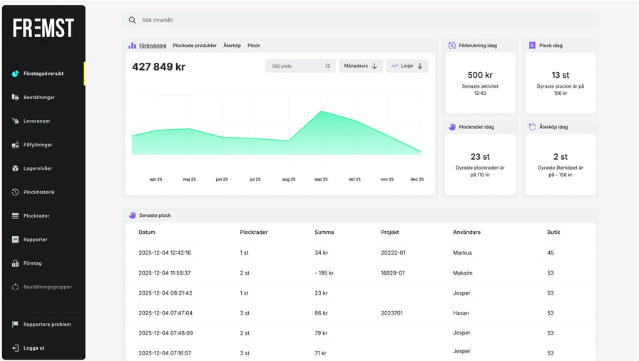 Få realtidskontroll över lagersaldon, plock och projekt. Analysera data, skapa rapporter och optimera er verksamhet - med smidig integration till ert affärssystem.