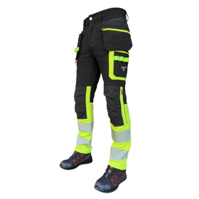 Arbetsbyxa - Jupiter Svart/Varsel - Stretch Arbetsbyxor i helstretch från Pesso, slitstarkt tyg och skön passform. Flexibla byxor med Cordura®-detaljer för bättre hållbarhet. Stretch åt alla håll och hög komfort ger en bra rörelsefrihet. Avtagbara fickor med zip.